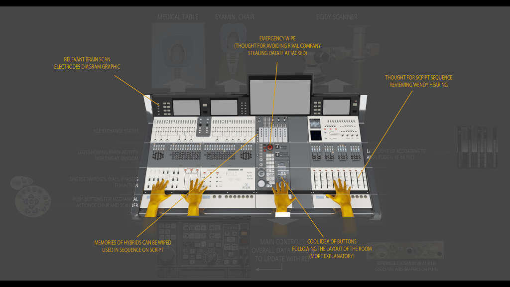 I mainly modeled the lab console and other tech elements, referencing music desks, electric pianos, and nuclear control rooms. Together with Art Director Virginie Bourdin and Coordinator Oriol Armengou, we designed the layout based on the function of each button section, and once modeled, the console was handed off to Senior Concept Artist Rubén Alba to do the final renders.